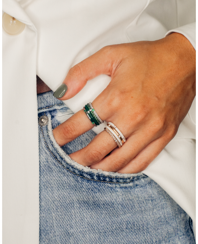 Design essenziale, enfatizzato dalla luce dei diamantini. Possibilitità di creare uno stile personale in abbinamento con le altre Fedine della linea Pop Mini.
