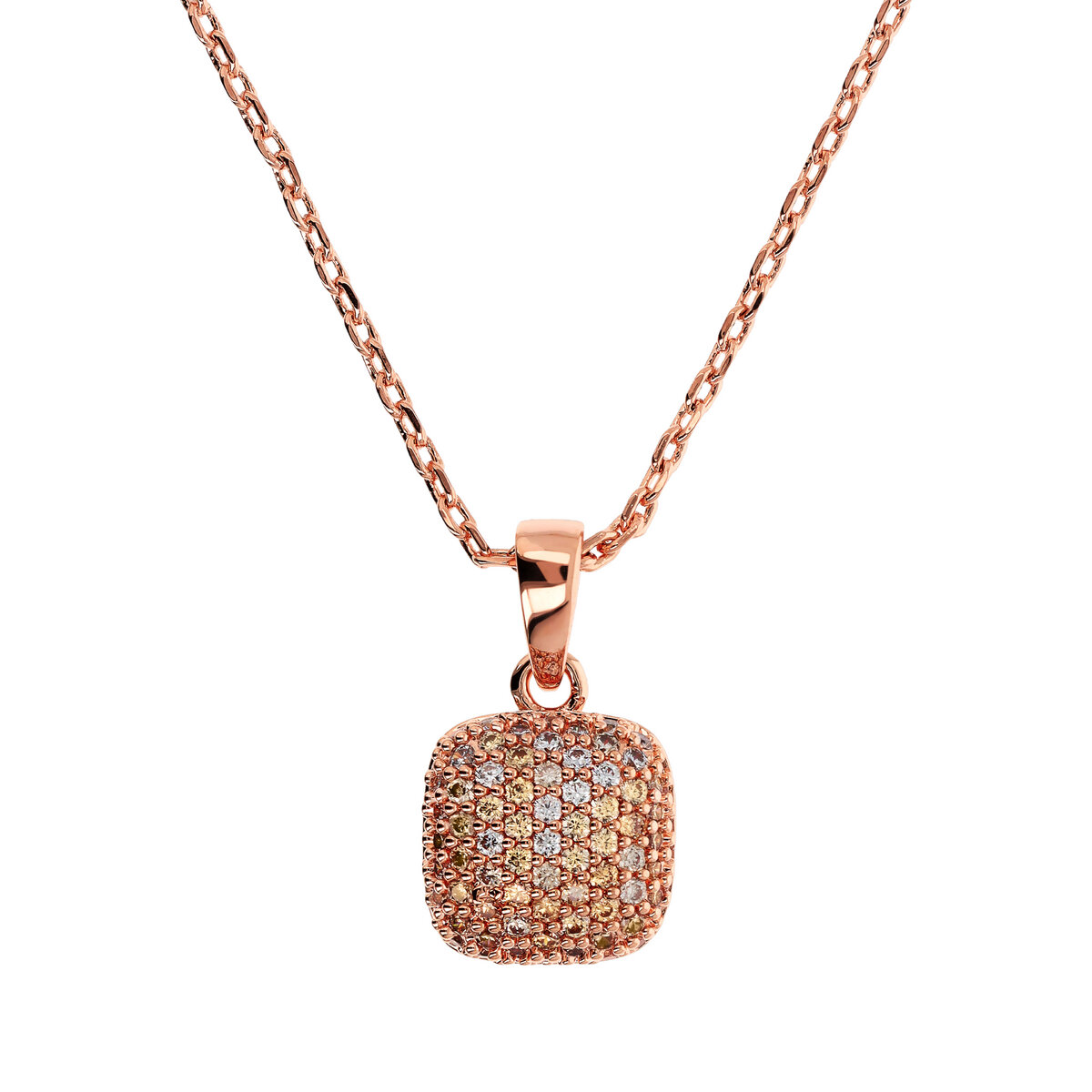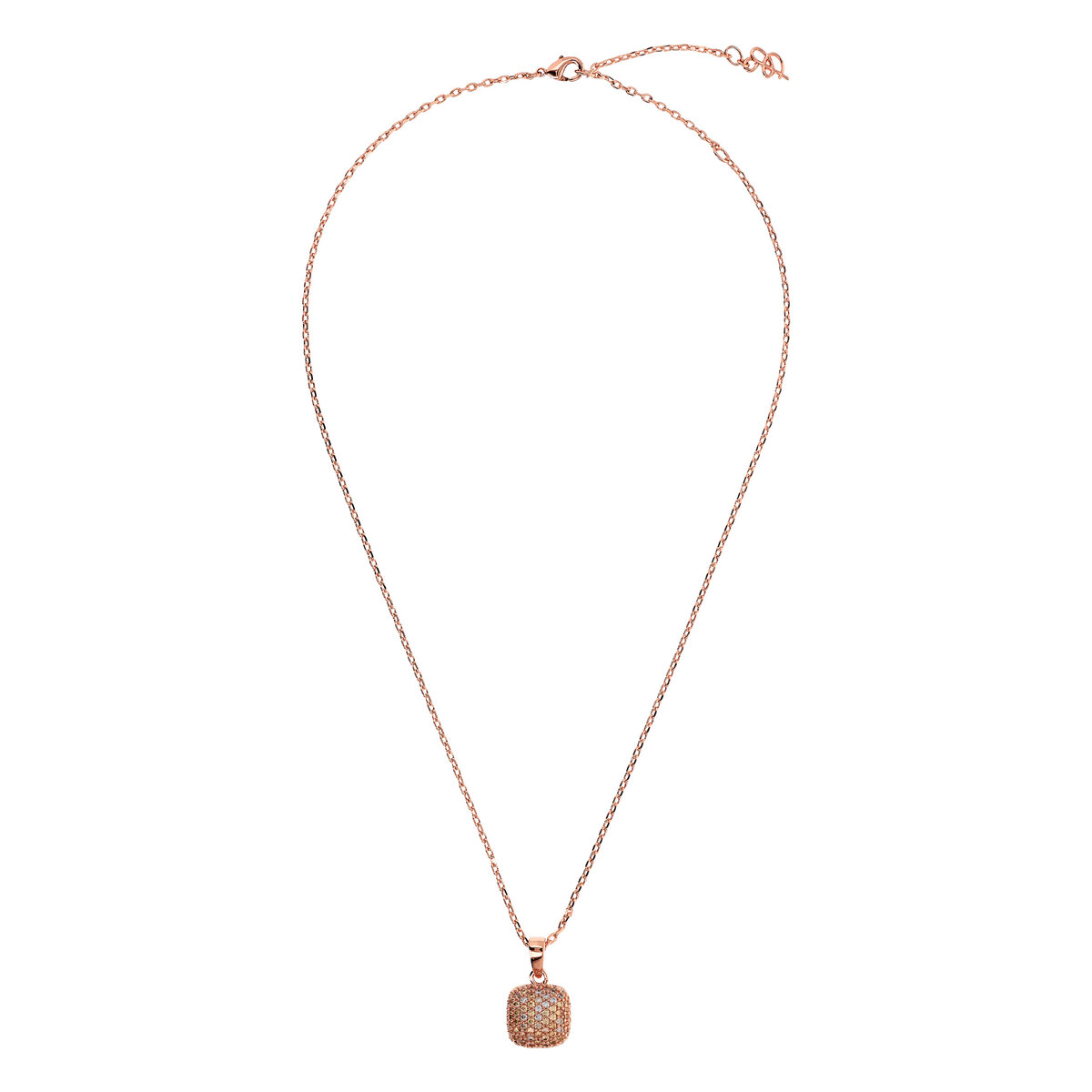BRONZALLURE - Collana Catena Rolo con Pendente Quadrato Pavé in Cubic Zirconia