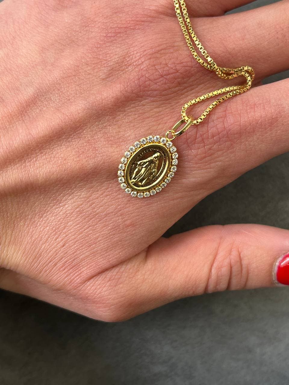 CIONDOLO MADONNINA MISERICORDIA ORO E ZIRCONI