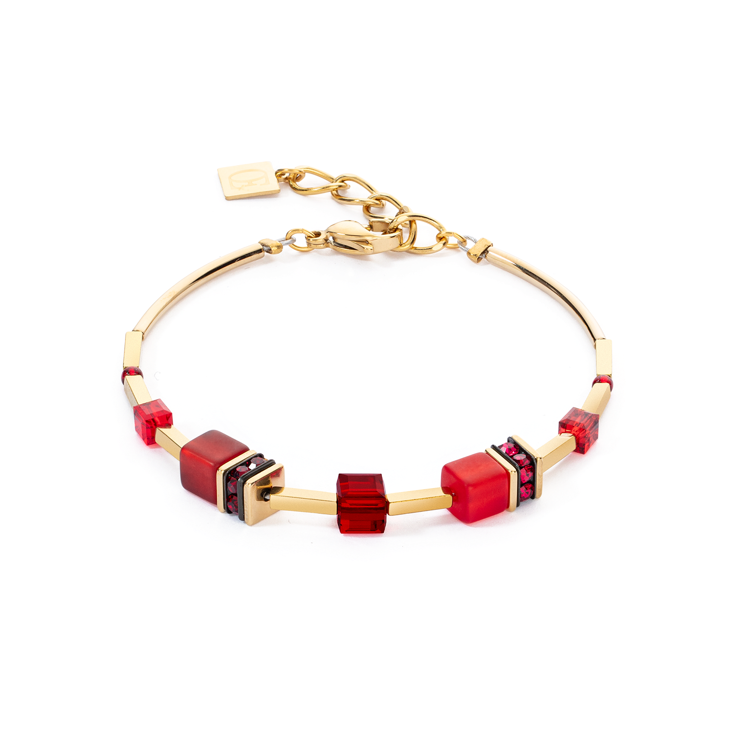 Il bracciale GeoCUBE® Iconic Lite in rosso-oro è il perfetto connubio tra leggerezza ed eleganza con un tocco casual. Incarna sapientemente la fusione di materiali di alta qualità e design senza tempo tipica di COEUR DE LION. Il cuore di questo bracciale sono gli iconici GeoCUBES®, disponibili in un'ampia gamma di colori imperdibili.