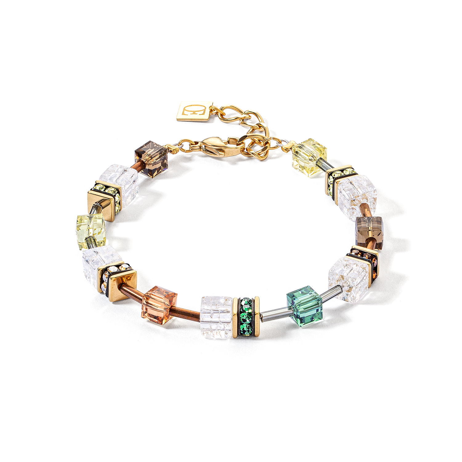 Bracciale GeoCUBE® Iconic Nature marrone-bianco in oro: i toni della terra in un design glamour Il bracciale GeoCUBE® Iconic Nature in marrone-bianco e oro si inserisce nel cuore della tendenza glamour a terra. Con una sofisticata combinazione di cristalli color terra e cubi di cristallo di rocca incastonati in oro lucido, questo bracciale pone accenti di stile. Si adatta a ogni occasione e aggiunge un tocco sottile ed elegante al vostro look - ideale per chi cerca un bracciale che combini la naturalezza con un tocco di glamour.