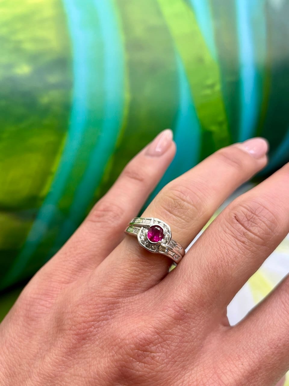 18kt rose gold ring. The Fantastic ring is named for its distinctive design and the interaction of its materials. It is crafted in 18kt rose gold, pear-cut sapphires, and white diamonds