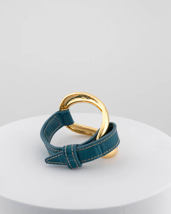 The MarriCortona Alligator bracelet is a handcrafted masterpiece created with great care and attention to detail. Its oval and rigid shape offers timeless elegance, while the 18-karat gold-plated bronze microfusion provides a golden shimmer that spectacularly catches natural light. One of the distinctive features of this bracelet is the use of genuine crocodile leather. Made in Tuscany.