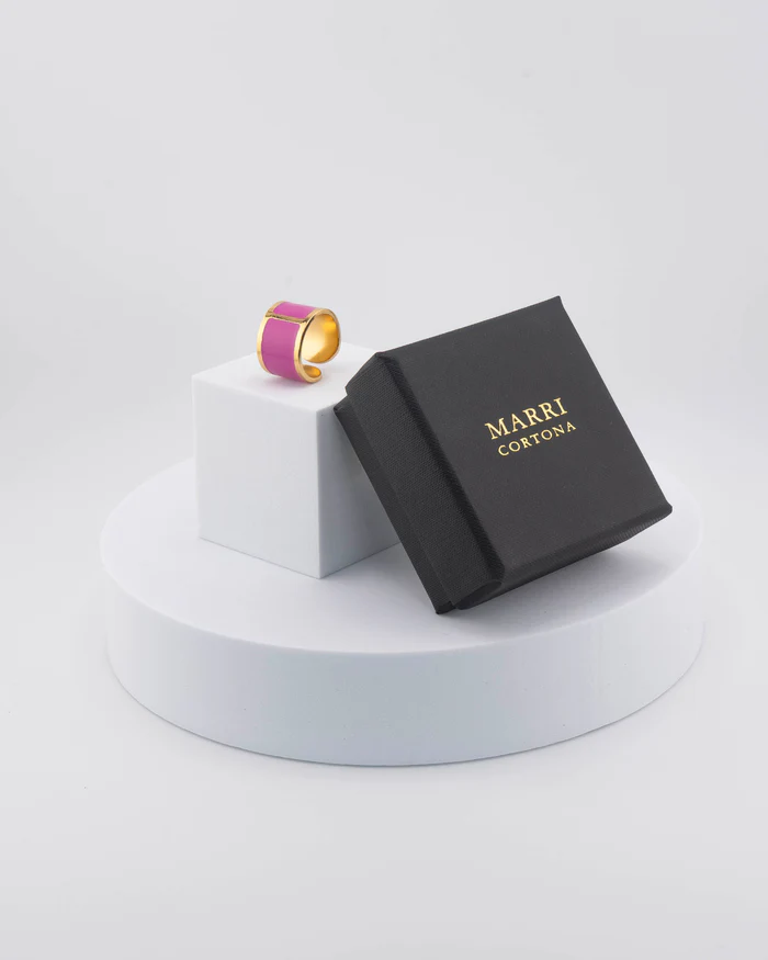 Band-style, adjustable, the MarriCortona Enamel Rings are an explosion of light and color. The shine of 18-carat gold and enamel in a thousand colors. Handmade in Tuscany, in our workshop by the skilled hands of our artisans.