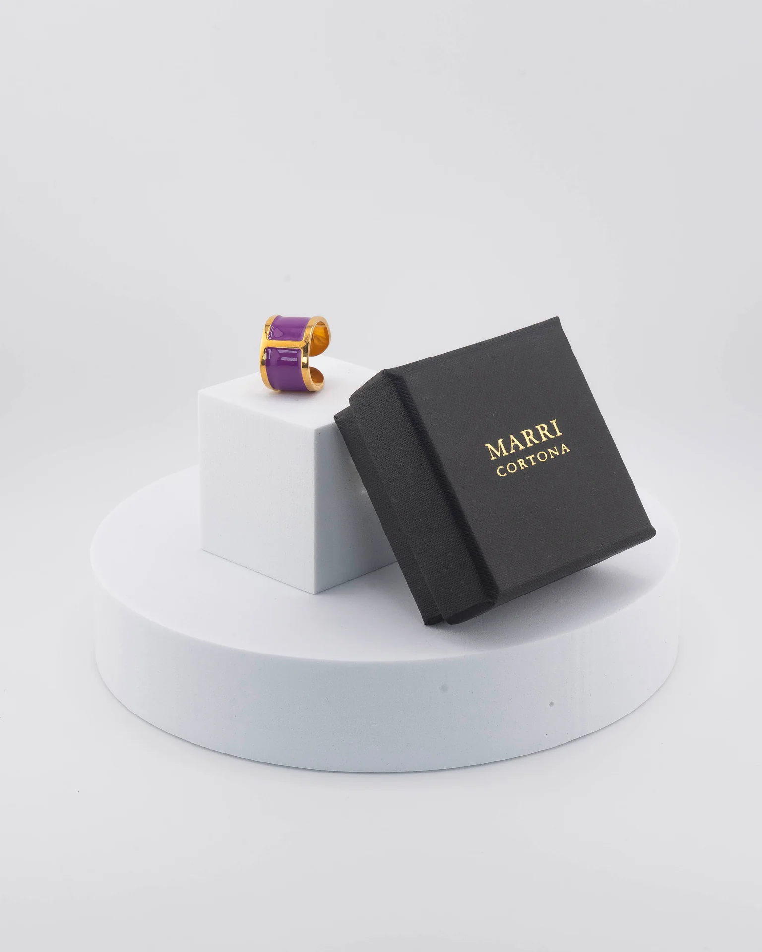 A band, adjustable, the MarriCortona Enamel Rings are an explosion of light and color. The glow of 18-karat gold and enamel in a thousand colors. Handmade in Tuscany, in our workshop by the skilled hands of our artisans.