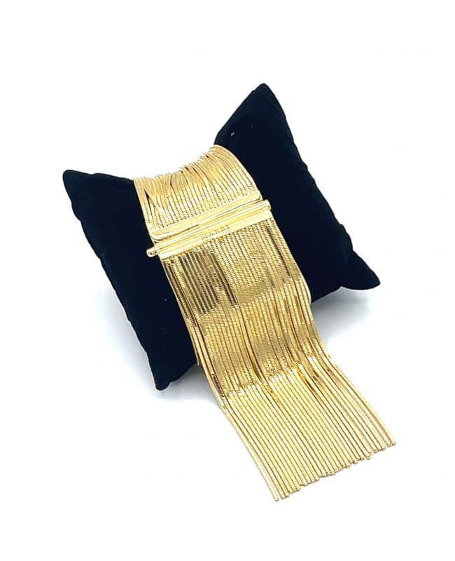 Some general guidelines to keep this product’s appearance and quality intact and unchanged: do not wear it while doing housework; avoid contact with soaps, detergents, and cleaning products that may dull its shine; avoid wearing it during sports activities. Contact with salt water, chlorinated water or sweat is discouraged. Keep away from heat sources.
