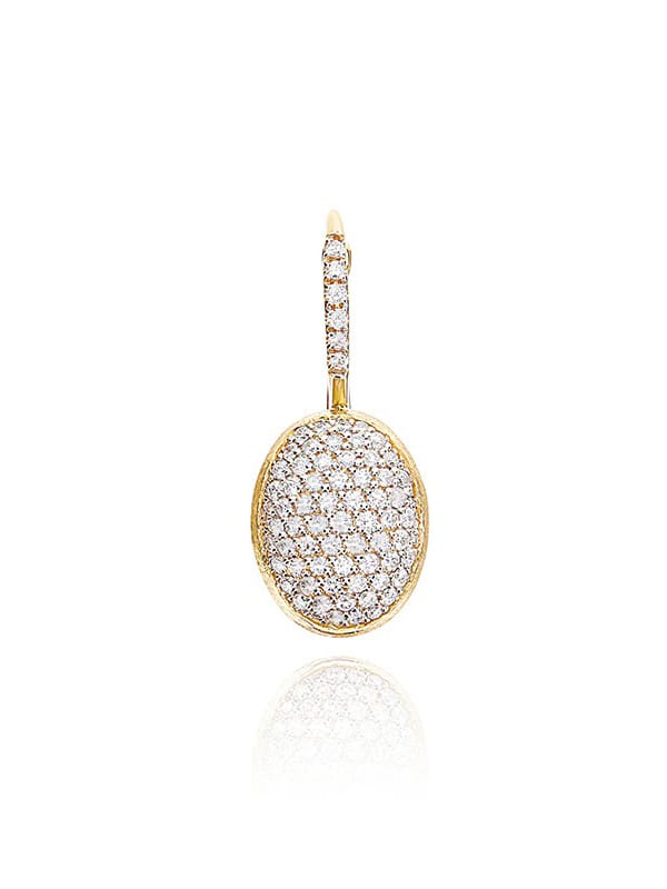 Two sumptuous diamond boules embraced by engraved 18kt gold are the absolute protagonists of these earrings, entirely handmade, a masterpiece of artistic craftsmanship and creativity.