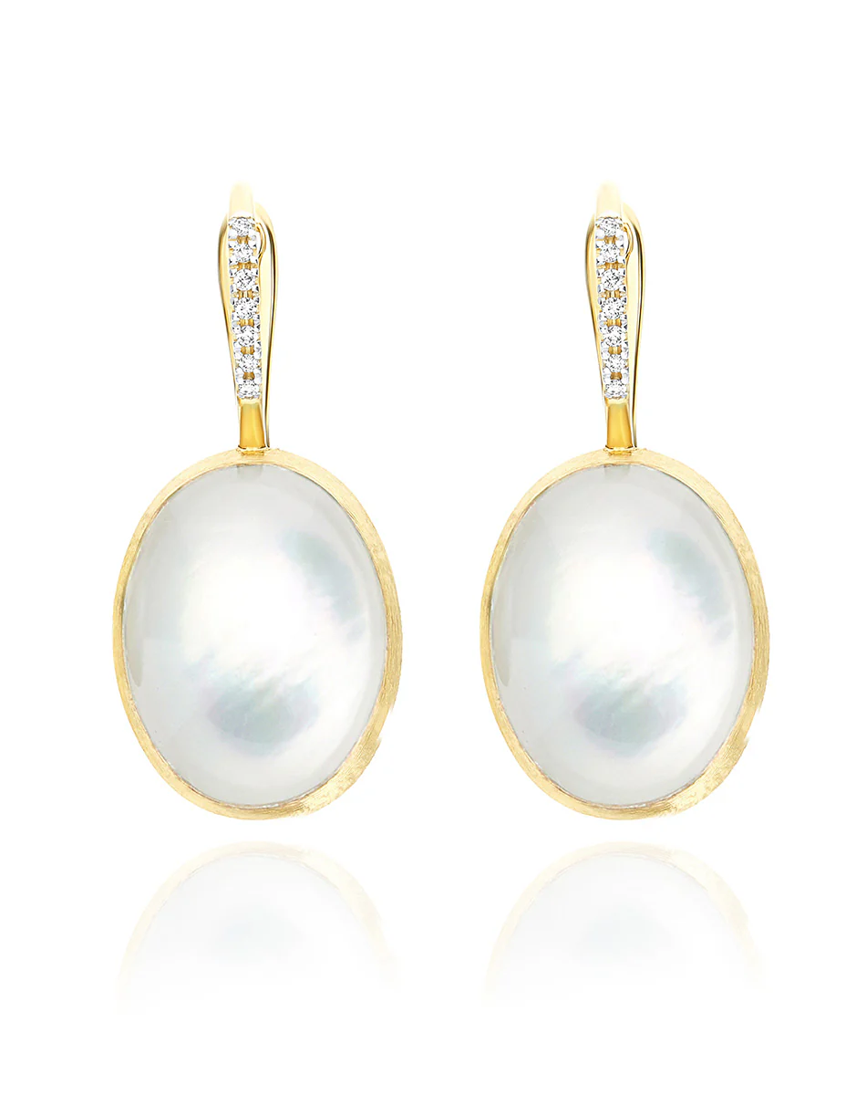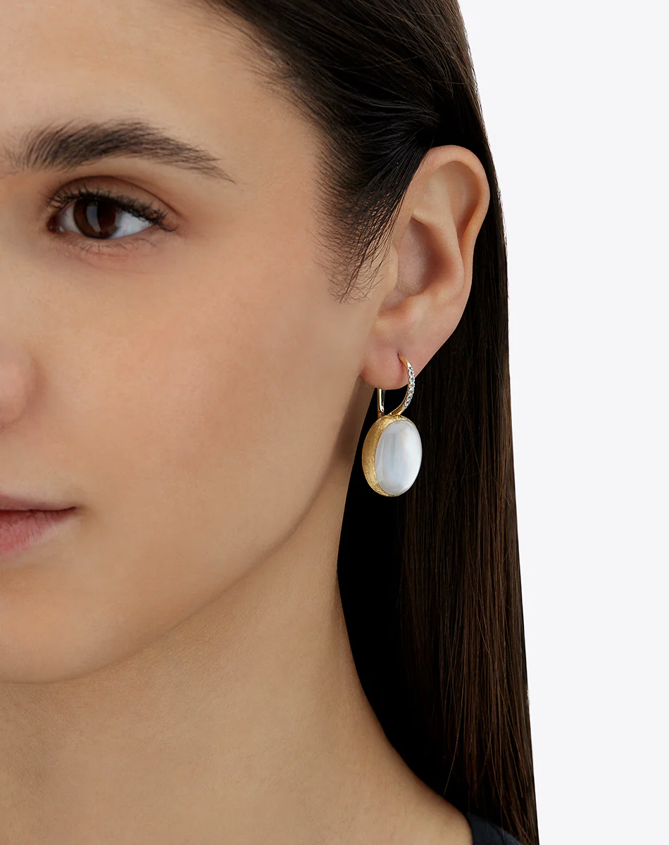 A summer night, the breeze on the skin, the sky dressed in moonlight. In the Dolcevita shade, mother-of-pearl meets the Boule — Nanis’ iconic shape — in a play of shimmering reflections that enhance its shine. The Ciliegine earrings, crafted from 18kt hand-engraved gold, embrace rock crystal and mother-of-pearl in a harmonious union, celebrating timeless elegance and the beauty of materials. The diamond clasp adds sparkle, while various sizes and designs allow for unique mixes. Each combination is a personal gesture that naturally expresses style.