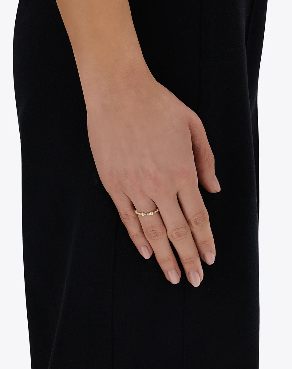 Nanis - "DANCING ÉLITE" ring with gold spheres and diamond bars