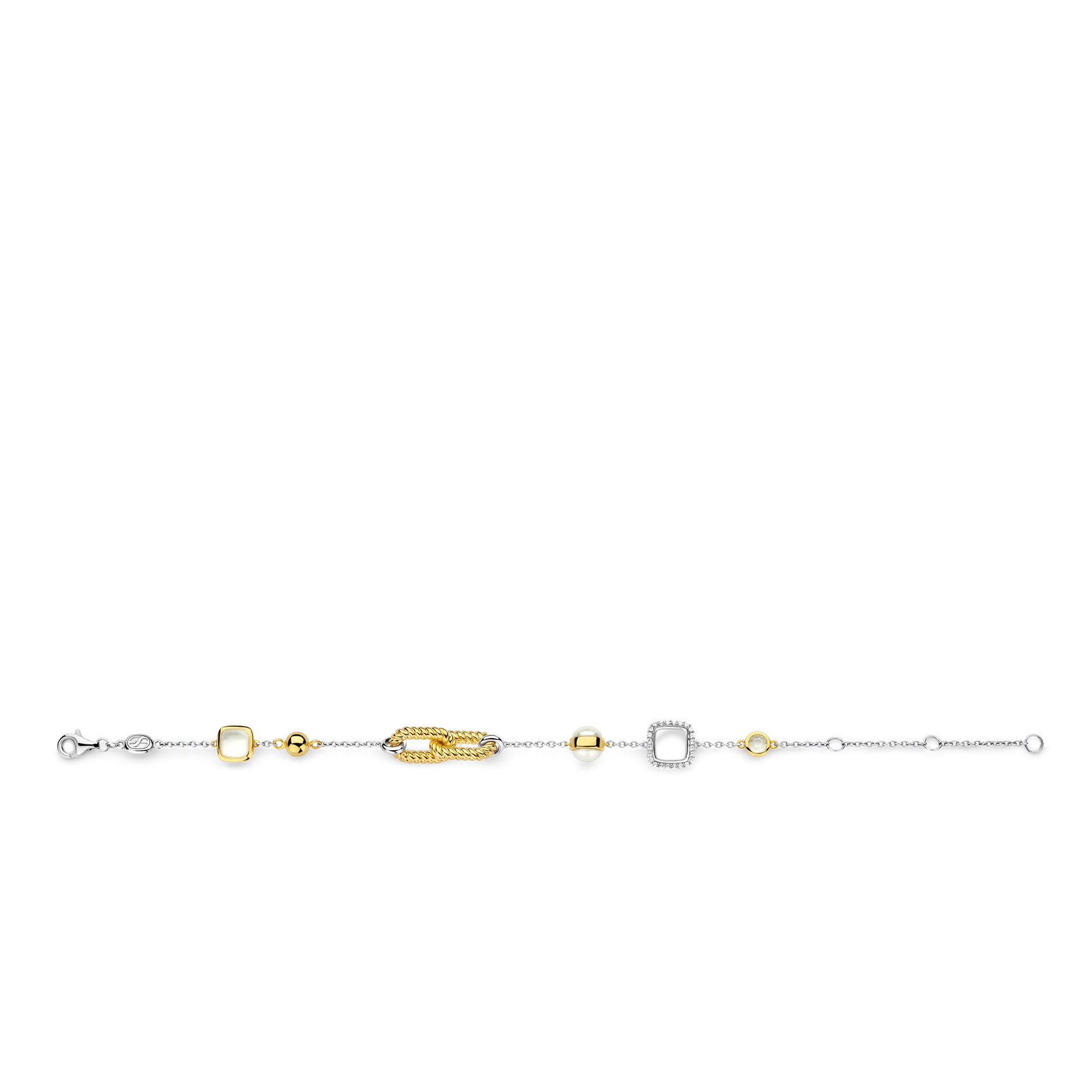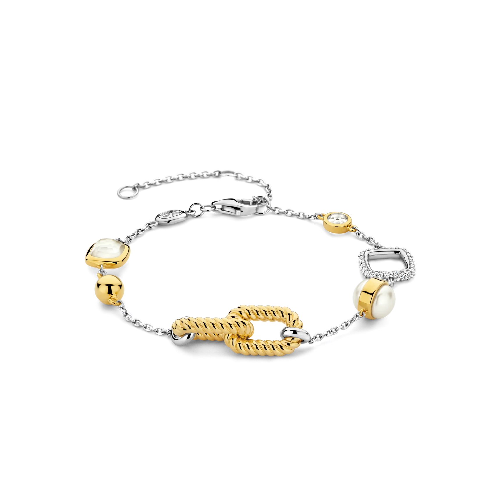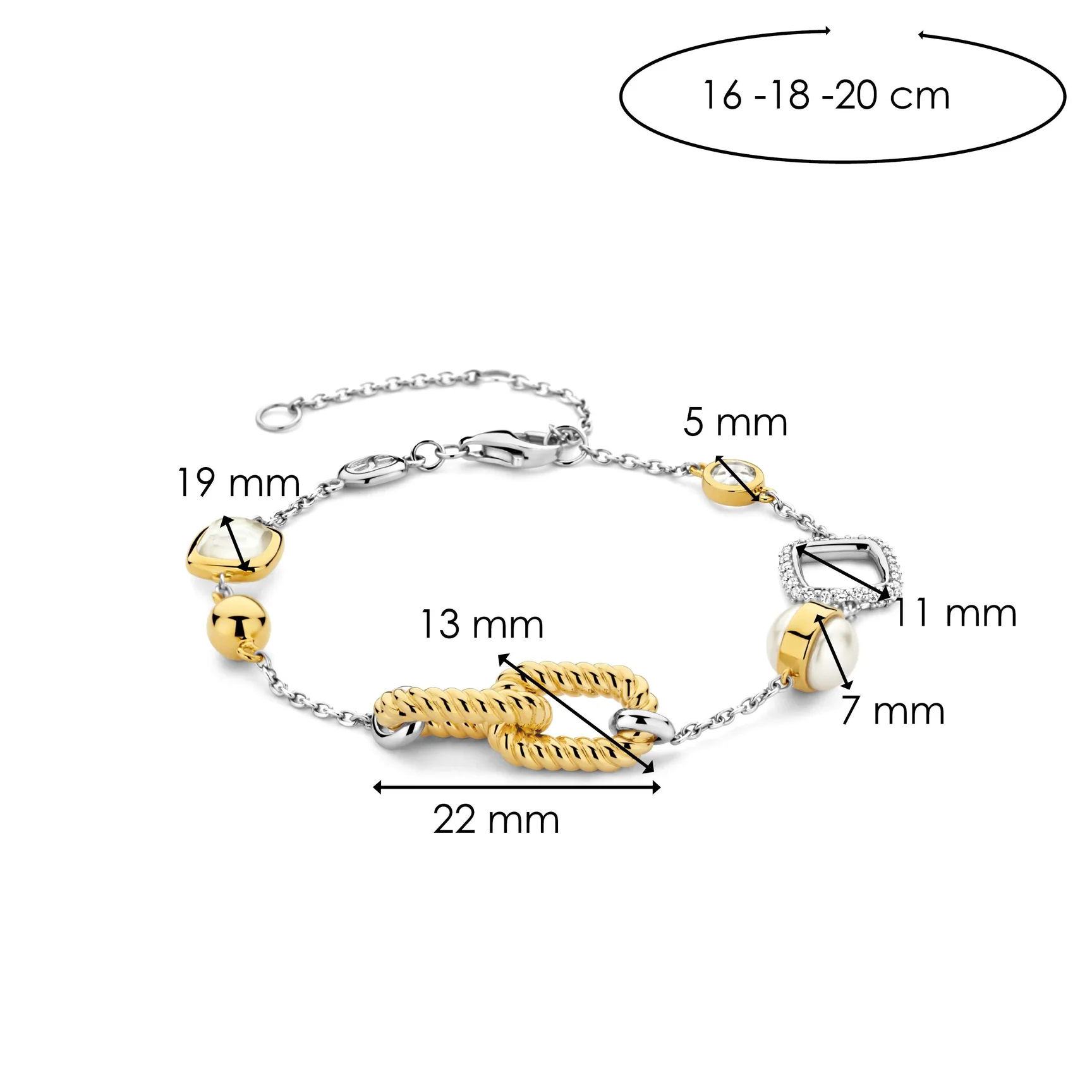 Questo bracciale TI SENTO placcato oro 23033ZY sfoggia un'armoniosa combinazione di lusso ed eleganza sobria. Il bracciale vanta un'accattivante combinazione di luminosa madreperla, caldi accenti in oro giallo, delicata perla e abbagliante pavé. Due esclusive maglie placcate oro con una raffinata struttura a intreccio sono il fulcro di questo design. Realizzato in pregiato argento sterling 925, il bracciale sfoggia una placcatura in oro giallo che aggiunge un tocco di vivacità e luminosità.