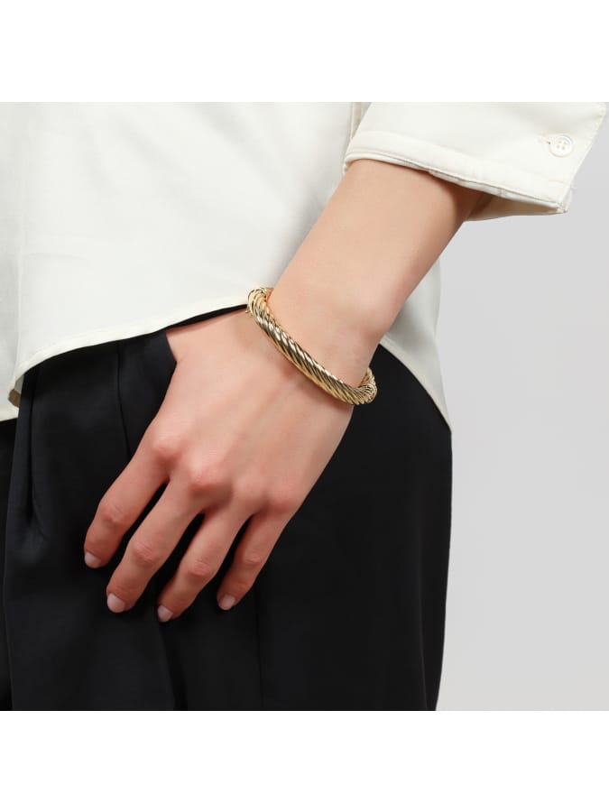 Rigid bracelet featuring a gold-plated torchon design. Measures 19.00 cm. Classic Collection. Show off this uniquely styled bracelet inspired by 1980s American costume jewelry.