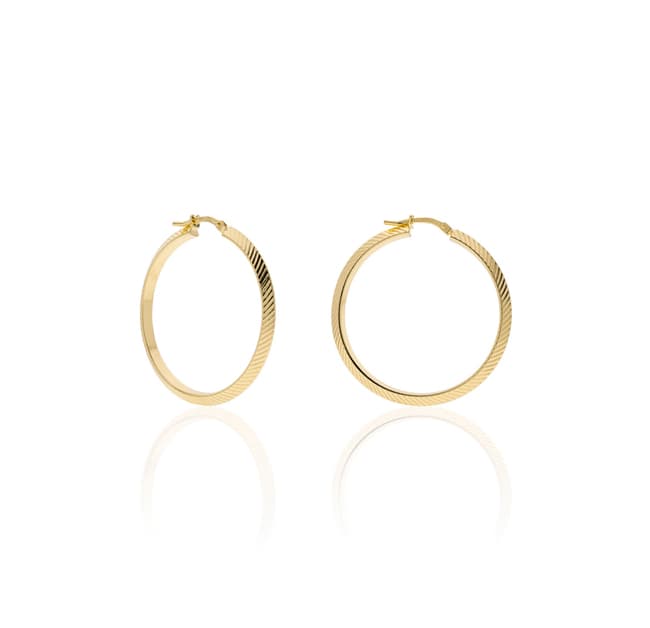 Hoop earrings with a diamond-cut finish. Iconic and minimal chic design for these hoops that can completely change any look. Once again, it is the elegance of simplicity that wins over everything. Discover combinations and create your unique style.