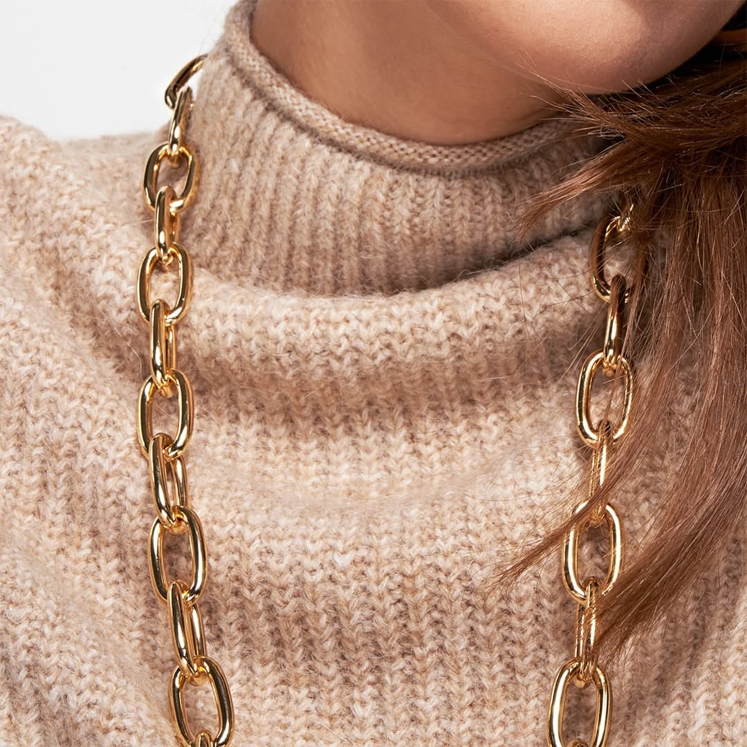 Long golden curb chain necklace. If you love accessories that make a difference, this necklace is just for you! Bold and gritty, also beautiful when worn doubled.