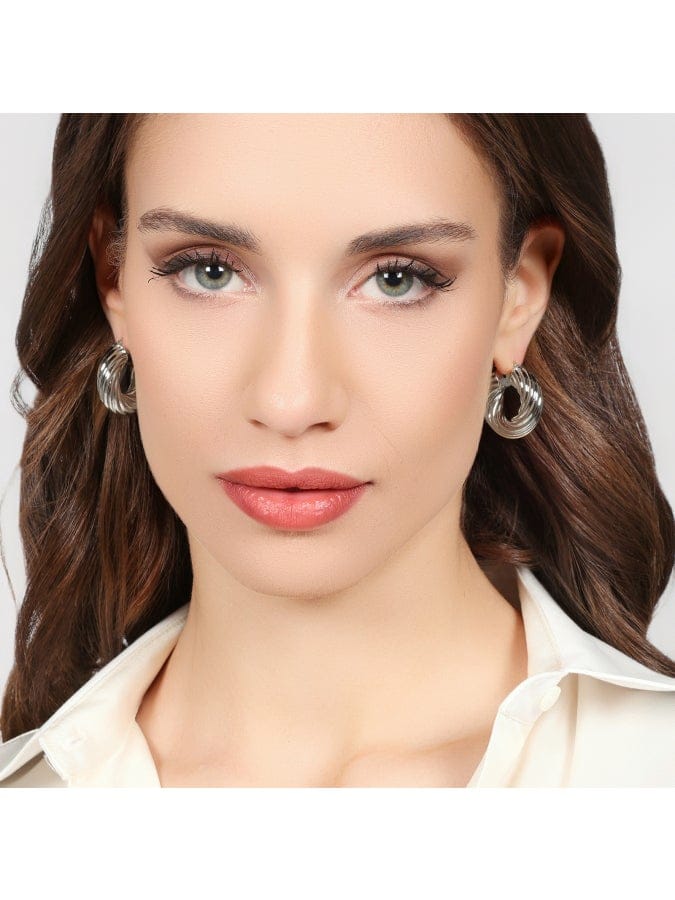 Silver-toned hoop earrings featuring a twisted torchon tube design. Bayonet clasp, 2.50 cm diameter. Classic Collection. A timeless piece that blends classic elegance with modern, alluring details.