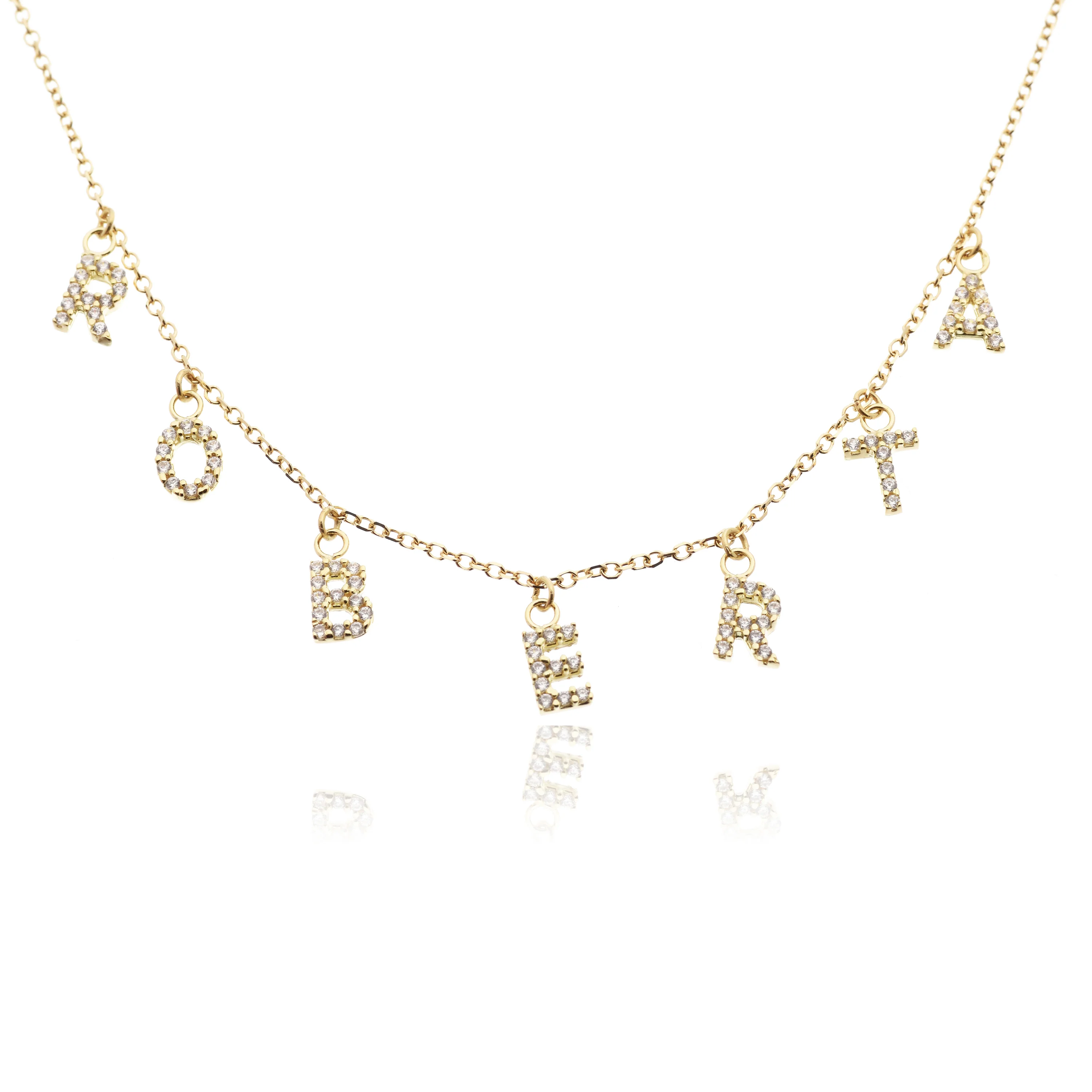 Facco - Collana Nome Lettere Pendenti Oro e Zirconi
