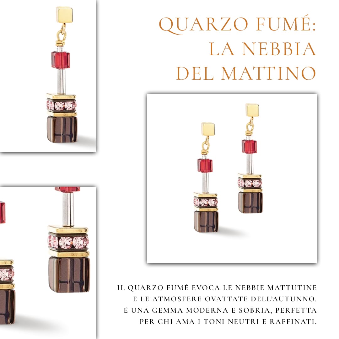 Con il suo colore grigio-bruno trasparente, il quarzo fumé evoca le nebbie mattutine e le atmosfere ovattate dell’autunno. È una gemma moderna e sobria, perfetta per chi ama i toni neutri e raffinati. Abbinato all’argento o all’oro bianco, crea gioielli dal fascino discreto ma irresistibile.
