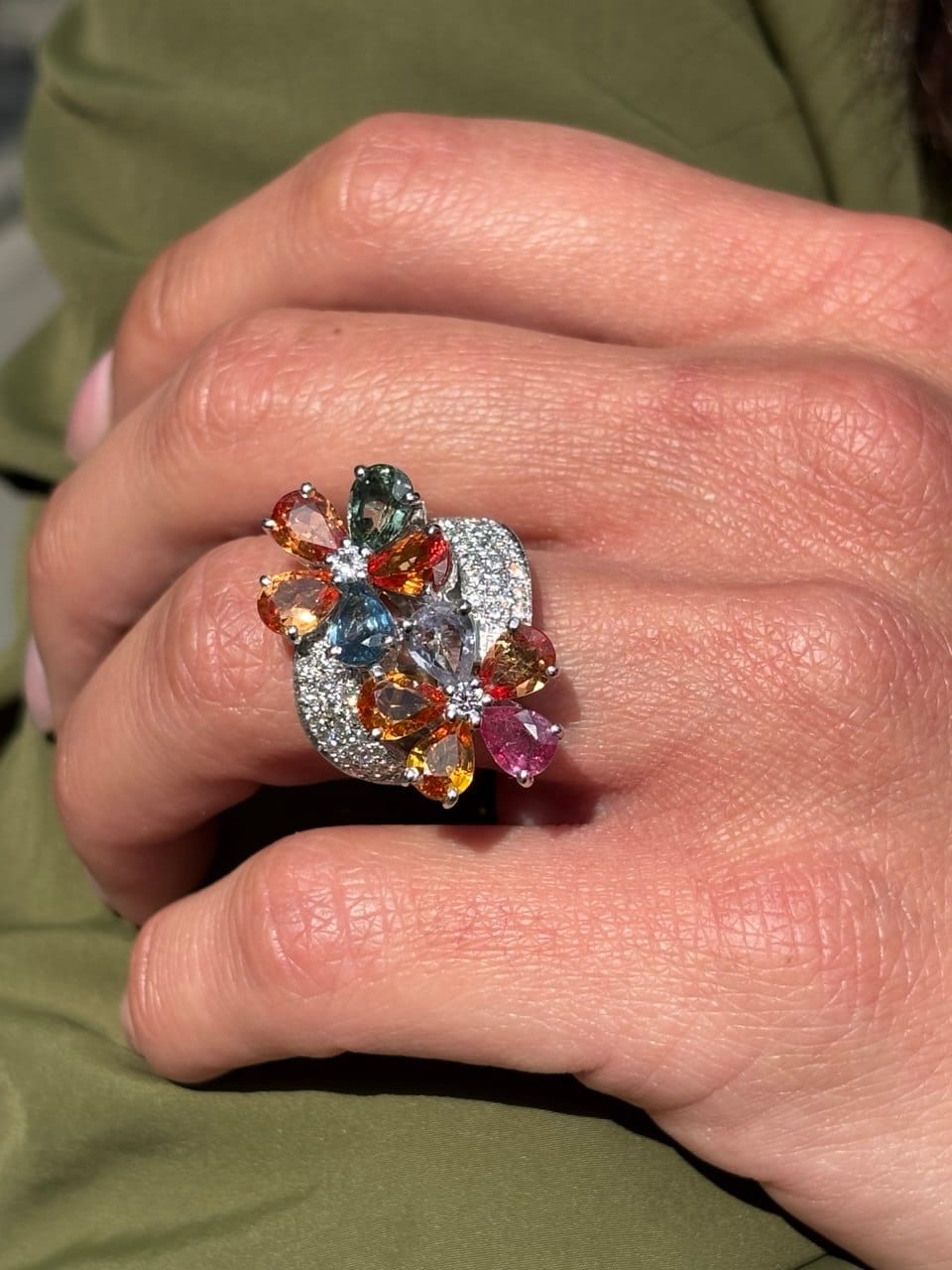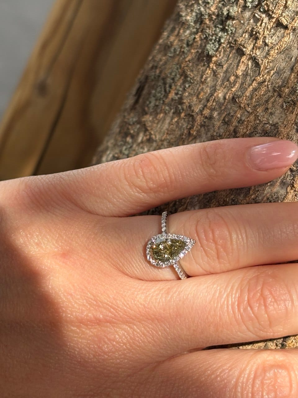 Anello in oro bianco 18 kt con diamanti bianchi e diamante brown