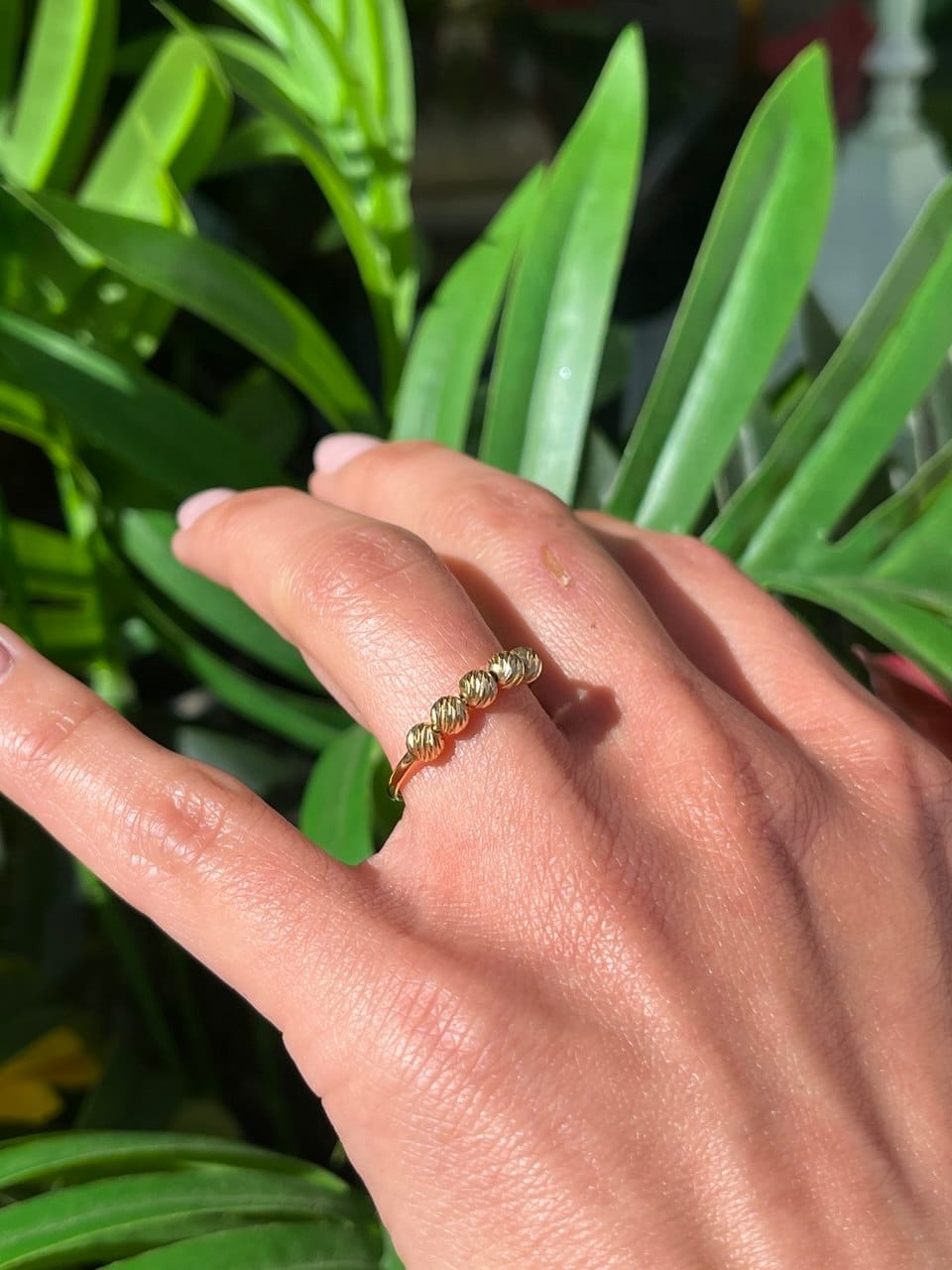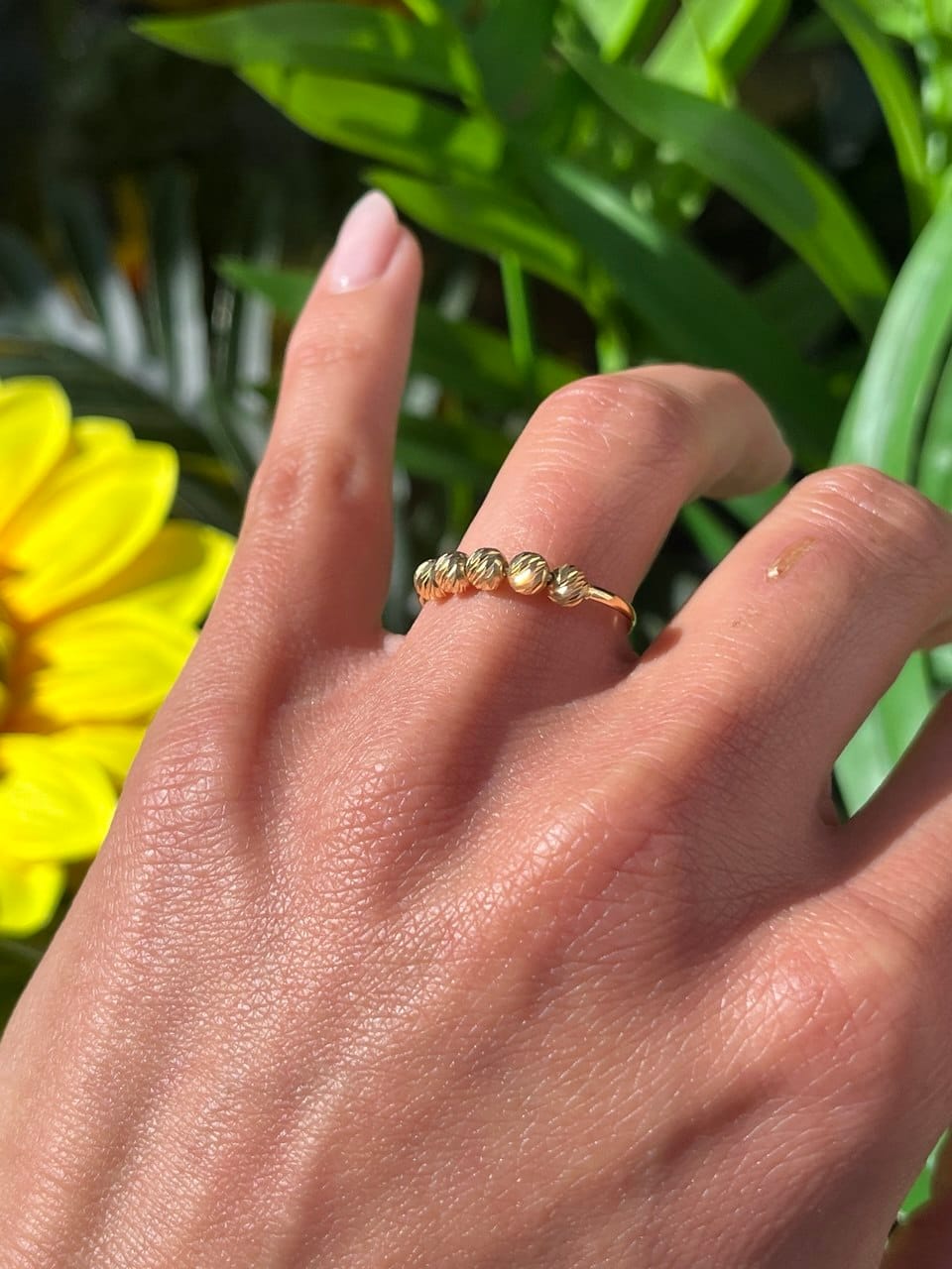 Anello Donna a fedina con perline in oro godronate