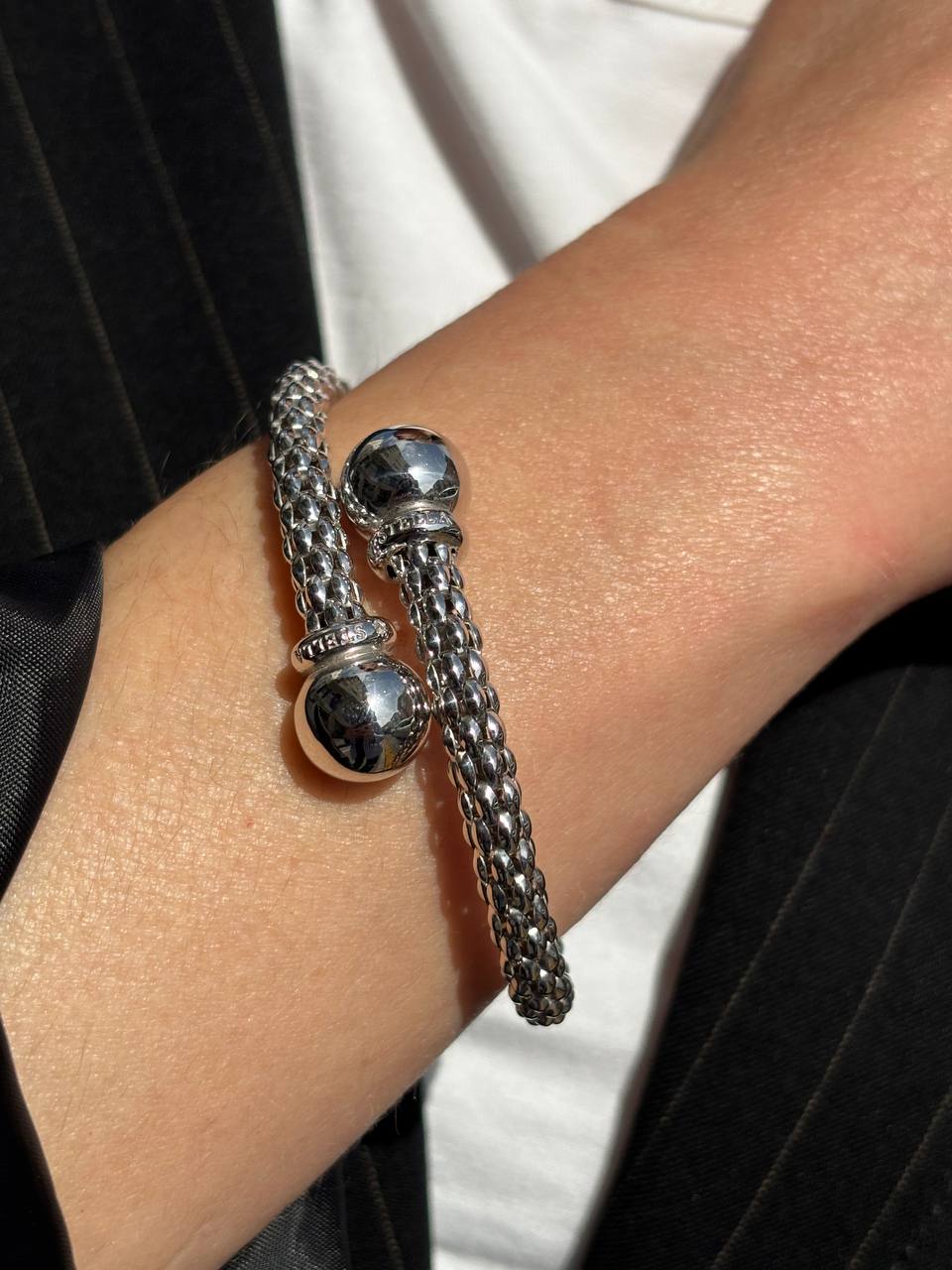 GORI GIOIELLI - Bracciale Rigido Maglia PopCorn in oro bianco 18 kt
