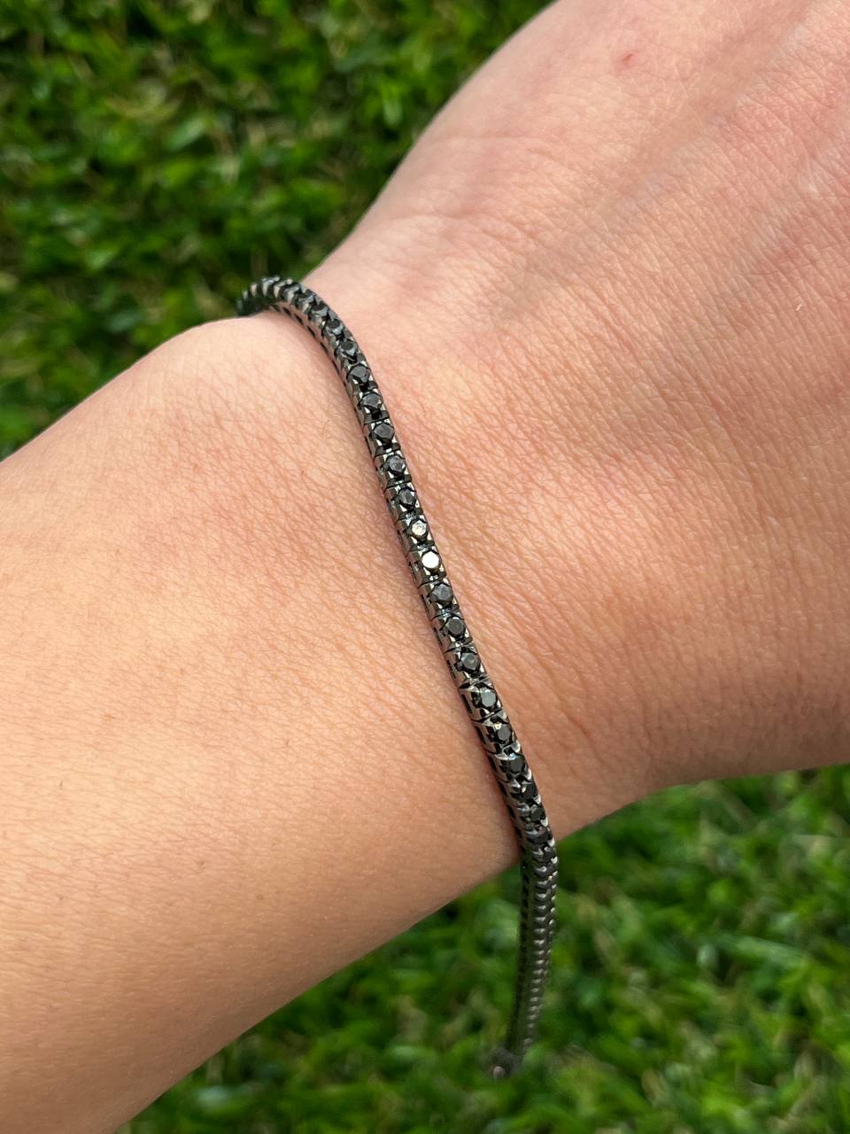 Bracciale Tennis con diamanti neri su oro con la placcatura galvanica con rutenio