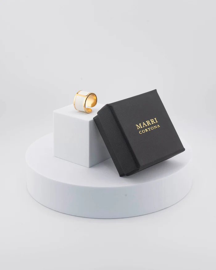 A fascia, regolabile, gli Anelli Smalto MarriCortona sono un'esplosione di luce e colore. La luce dell'oro 18 carati e lo smalto di mille colori. Fatti a mano in Toscana, nel nostro laboratorio dalle mani sapienti dei nostri artigiani.