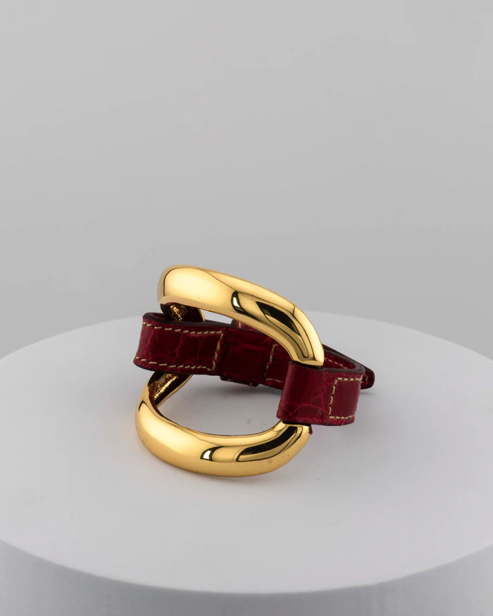 La collana "Alligator" di Marri Cortona è un gioiello unico in cui il bronzo placcato oro 18 carati incontra la pelle di coccodrillo in una forma sinuosa e regolabile, simbolo di uno stile audace ma raffinato. Progettata e realizzata a mano nel nostro atelier toscano, questa collana fonde la tradizione artigianale con il design contemporaneo, trasformando la forza grezza della texture in coccodrillo in un'affermazione di sofisticata audacia.Ogni dettaglio riflette la cura e la visione creativa che definiscono la firma di Marri Cortona: un perfetto equilibrio tra tradizione e modernità, luce e movimento, eleganza e carattere. Un pezzo esclusivo, creato per chi abbraccia un'eleganza senza tempo con un tocco moderno e sicuro.