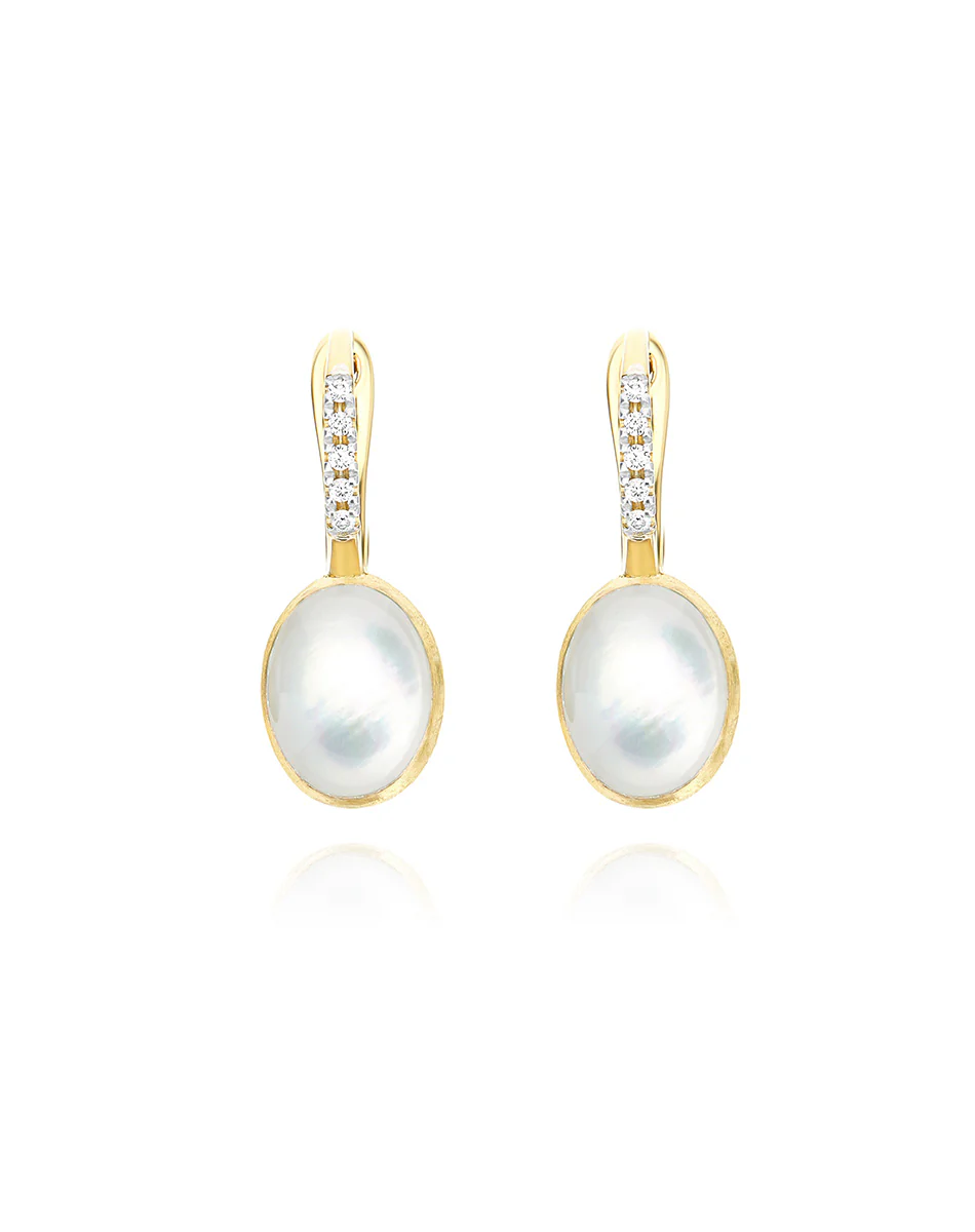 Nanis - Orecchini Ciliegine "Boules" Dolcevita in oro inciso, diamanti, madreperla e cristallo di rocca (PICCOLI)