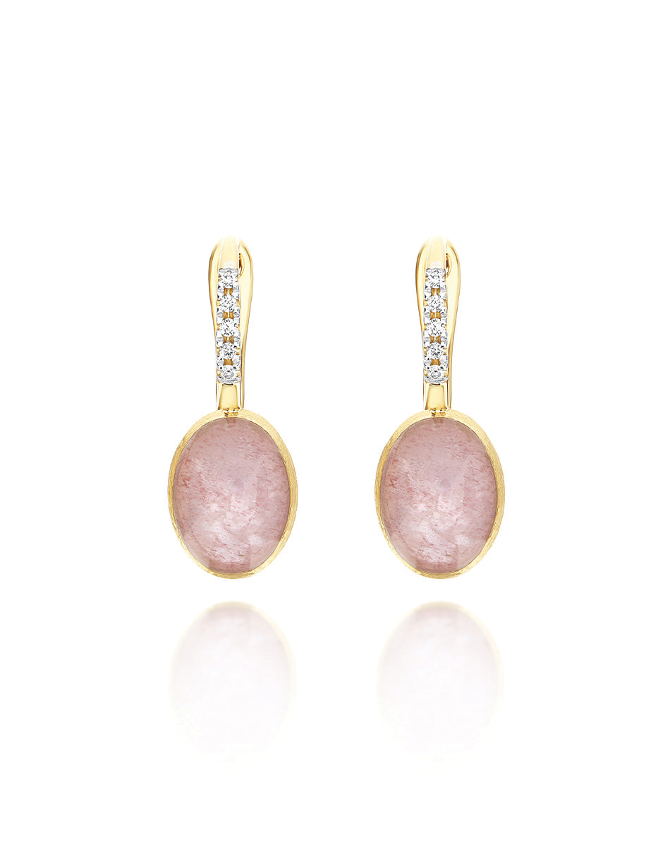 Nanis - Orecchini ciliegine Rosolio "BOULES" in oro inciso, diamanti, cristallo di rocca, quarzo fragola e madreperla (PICCOLI)