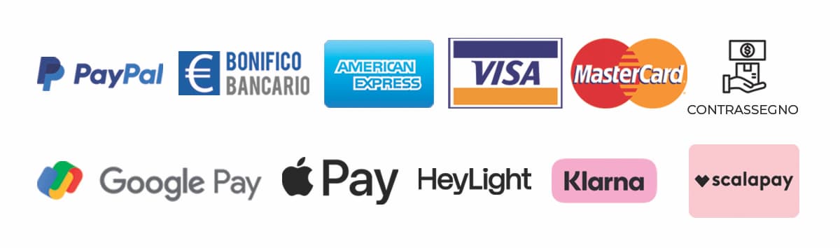 Gli acconti potranno essere pagati tramite Carta di Credito, Bonifico Bancario, Paypal, Klarna e Scalapay.