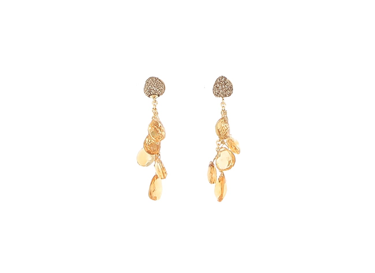 Orecchini con ciondoli polvere Giallo Nardò e 10 Quarzo Citrino