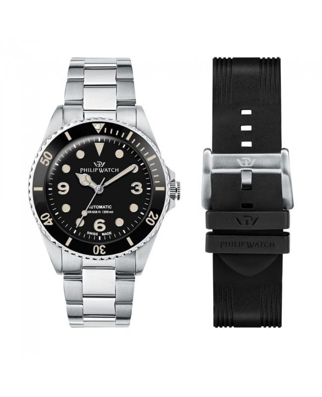 Orologio Philip Watch Caribe Diving - R8223216008 - Genere : Uomo, Materiale e finitura cassa: Acciaio, Silicone, Dimensione cassa: 42 mm, Spessore cassa: 13.30, Finitura cassa: Lucido e satinato, Vetro: Zaffiro, Colore cinturino: Silver, Chiusura: Fibbia diver con blocco sicurezza, Swiss made: Sì, Water resistant: 20atm, Philip Watch experience: Sport.