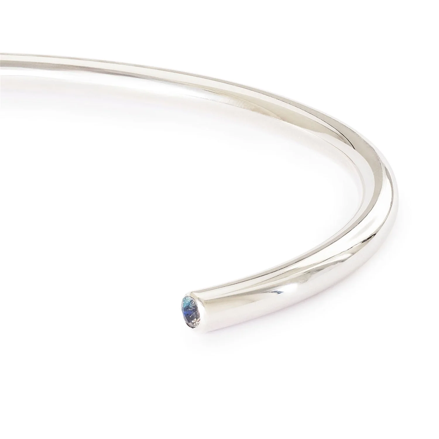 lI bangle in argento 925 ha nella parte terminale una labradorite sfaccettata.