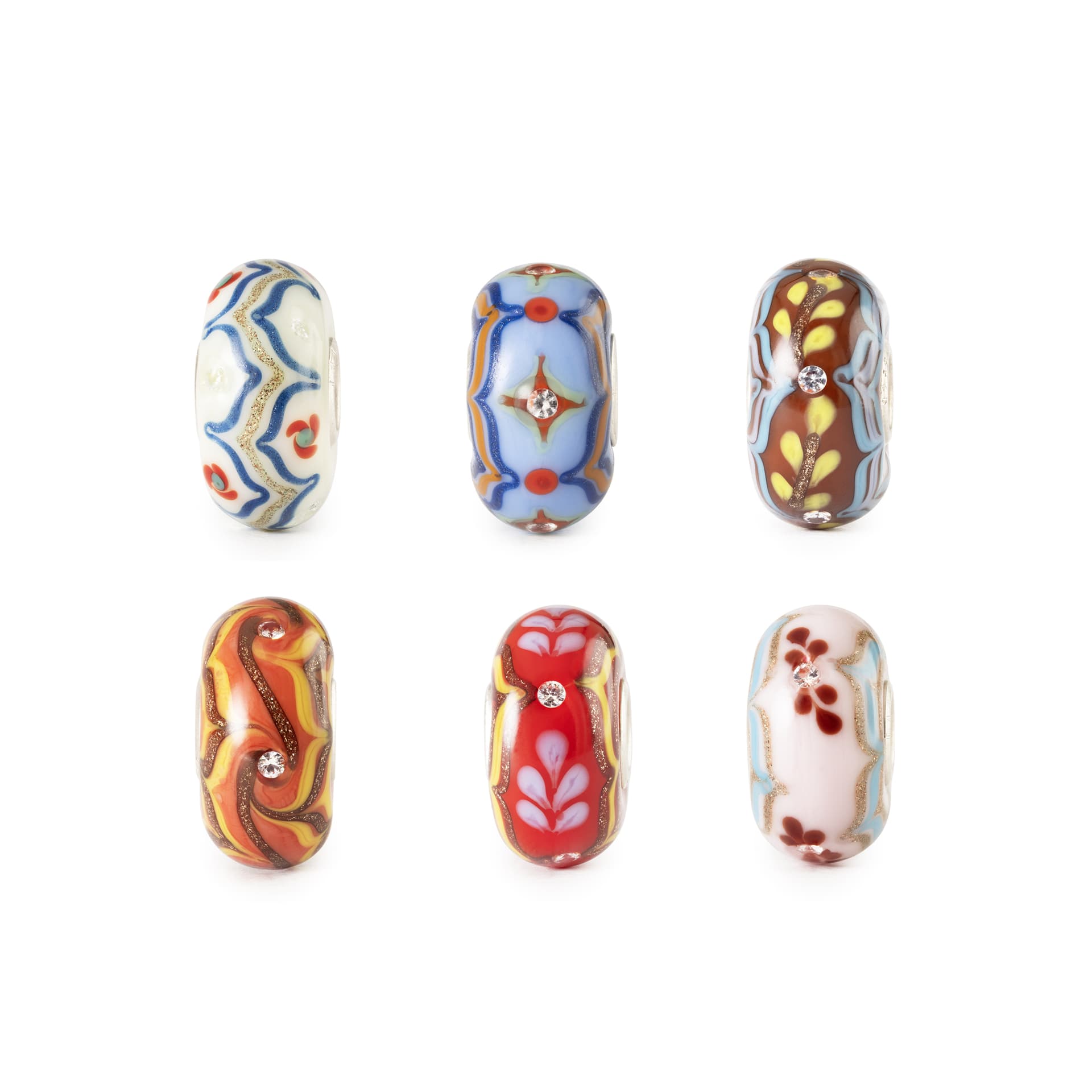 I beads si ispirano ai design tanto amati dai collezionisti, noti come i Curry beads, ora arricchiti da un'irresistibile scintilla di luce, grazie agli zirconi incastonati