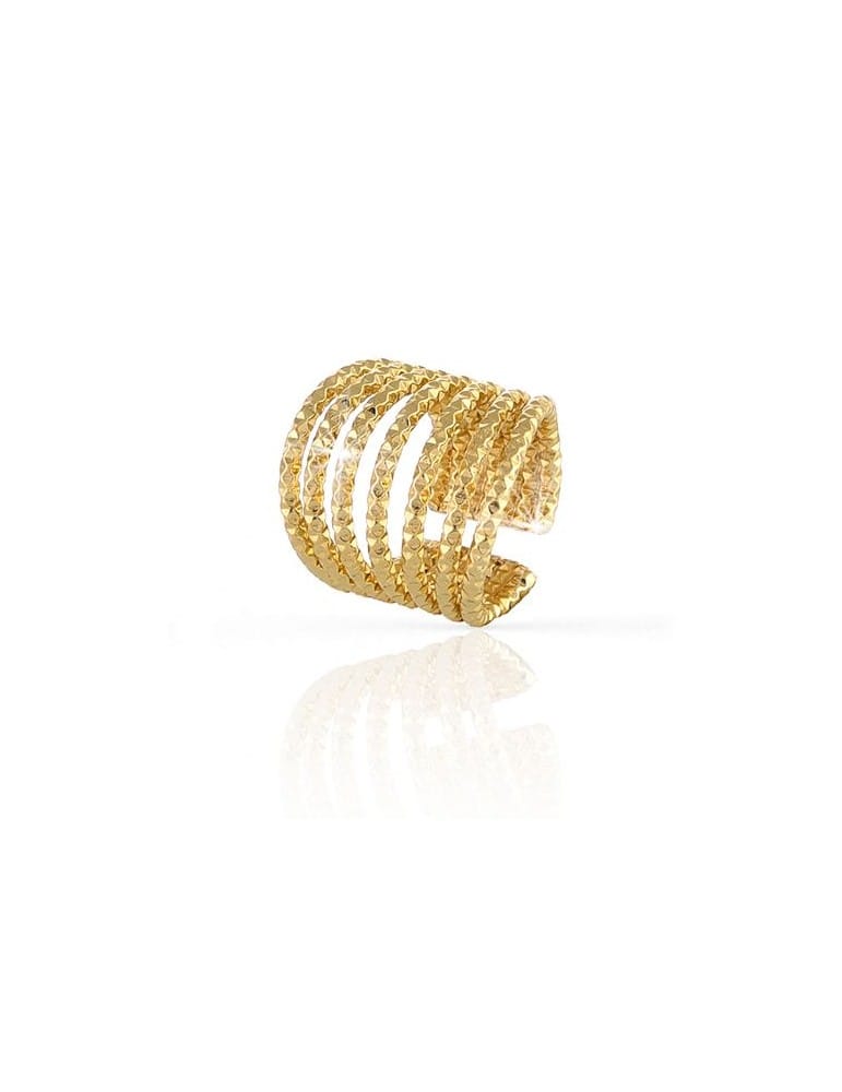 Anello in bronzo dorato con sette fili in finitura diamantata. L’effetto luminoso della finitura diamantata rende questo anello perfetto per aggiungere quell’immancabile tocco di luce ed eleganza a tutti i tuoi outfit