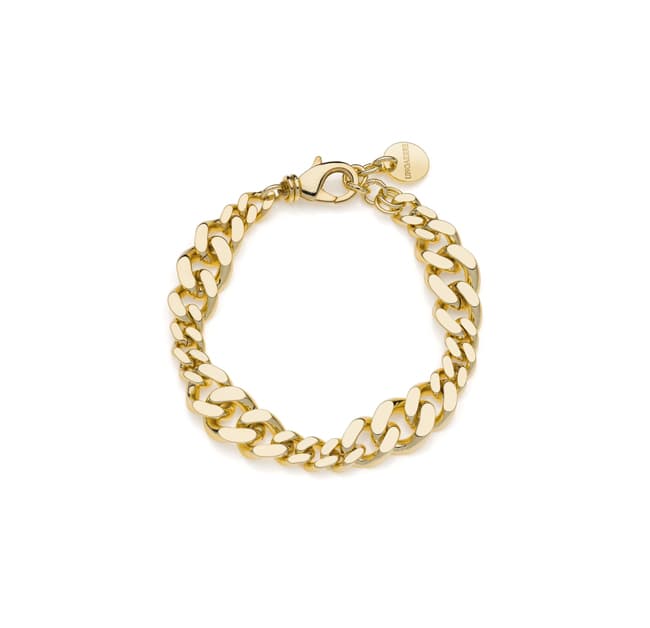 Bracciale donna dorato in catena grumetta diamantata scalare. L'iconica groumette viene declinata in finitura diamantata iper luminosa con maglie a scalare per creare ancor più luce e movimento. Unoaerre rende omaggio alla sua storia di produzione catene con un gioiello dall'eleganza contemporanea e glamour.