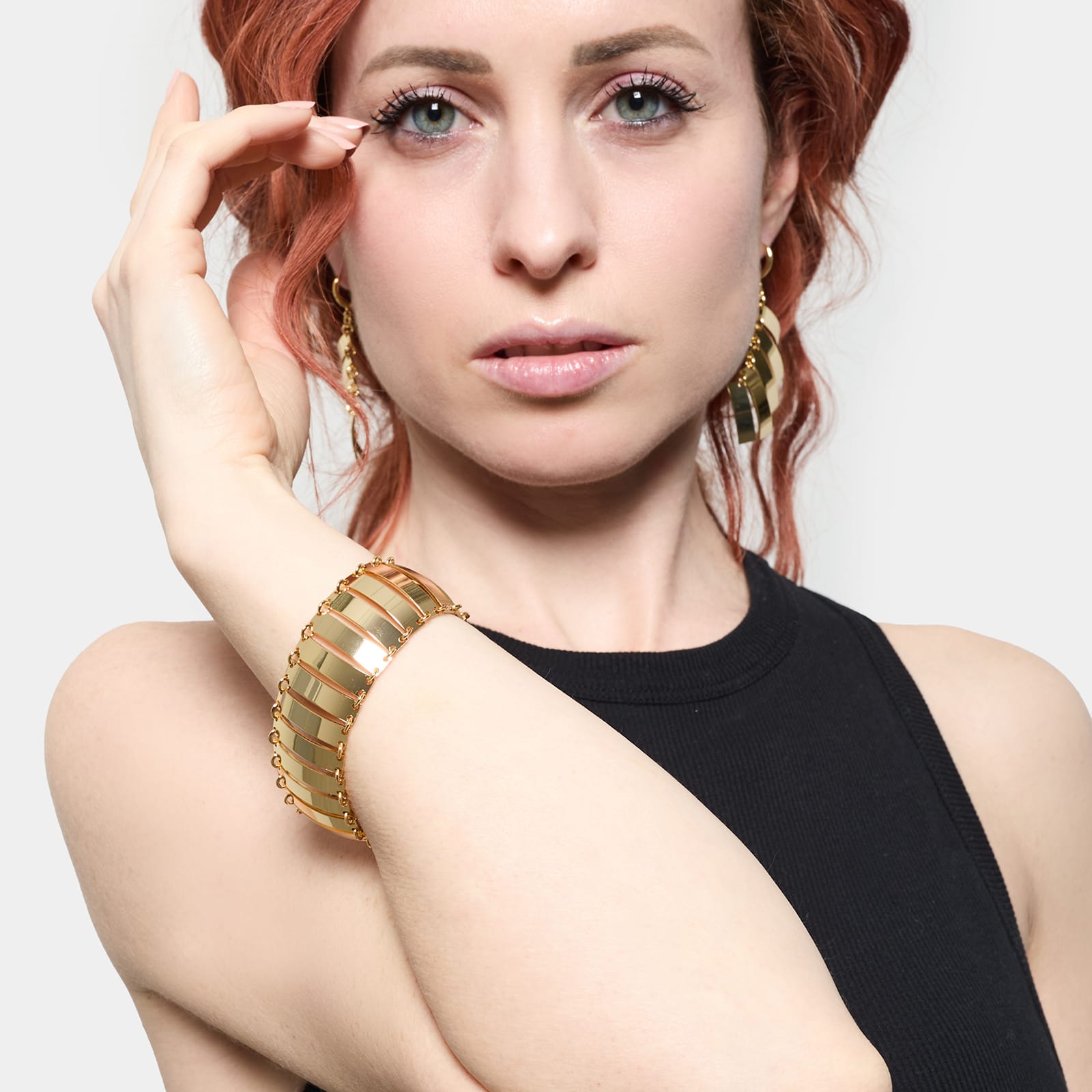 Bracciale con catena piatta a spina di pesce dorata. Bastano i giusti accessori per rendere unico e speciale un look e con questo bracciale brillerai in ogni occasione. Il design elegante acquista movimento e ad ogni tuo passo le lastrine piatte rifletteranno mille luci.