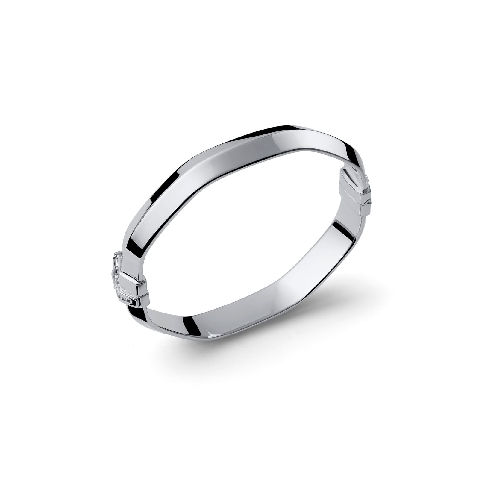 Bracciale bangle da donna argentato. Stile sofisticato, eleganza bold. Design deciso, geometrico e di grande impatto: questo bracciale rigido è il gioiello perfetto per chi ama osare e distinguersi con eleganza e carattere. Indossalo da solo come statement piece o abbinalo ad altri bracciali e dichiara il tuo stile.