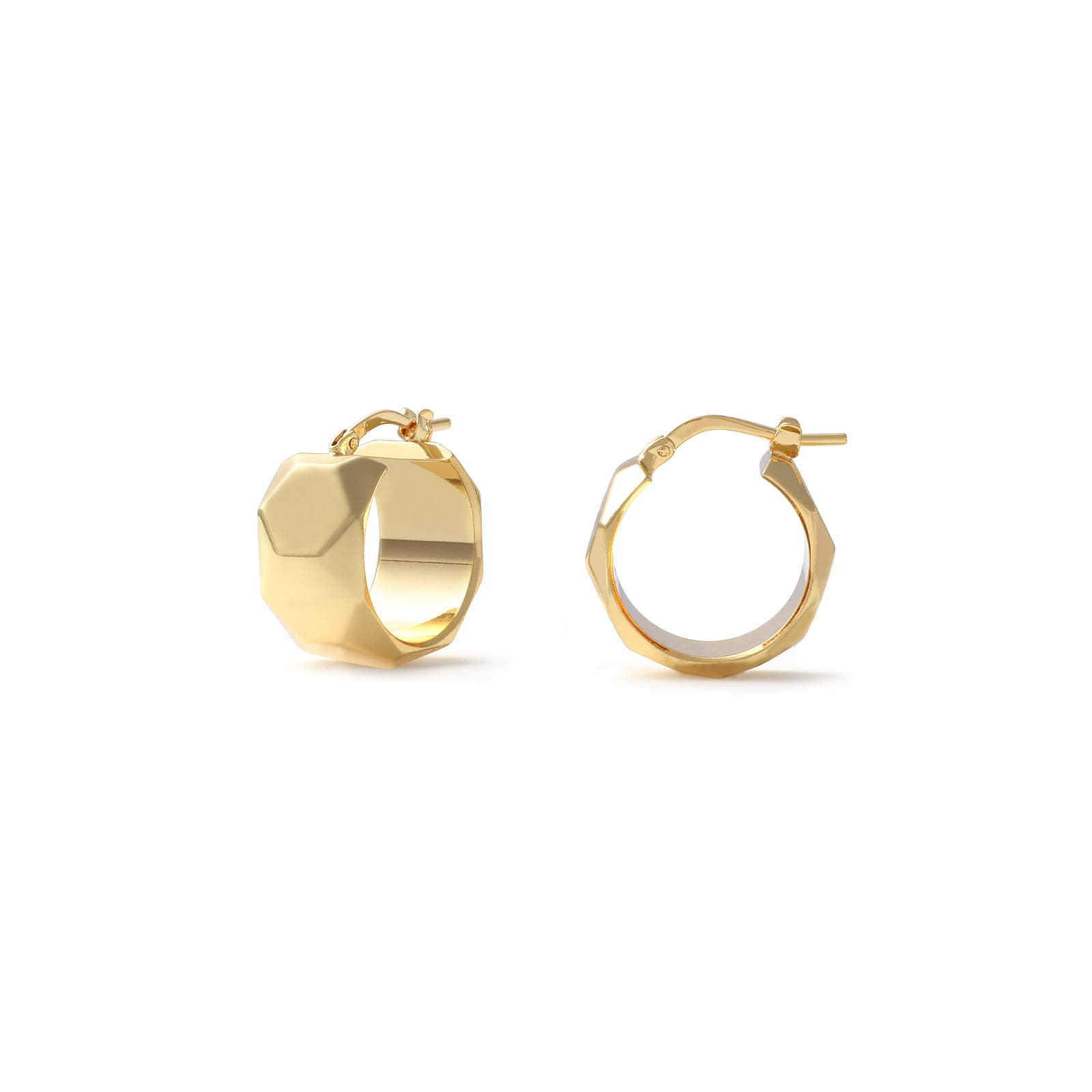 Orecchini a cerchietto con superficie sfaccettata. Un gioiello che unisce tradizione orafa e design contemporaneo a favore di un'eleganza senza tempo. Non solo un accessorio luminoso e versatile perfetto per impreziosire ogni outfit, ma una vera e propria chiave d'espressione. Scopri i gioielli coordinati per completare il look, rifletti tutte le sfaccettature del tuo stile