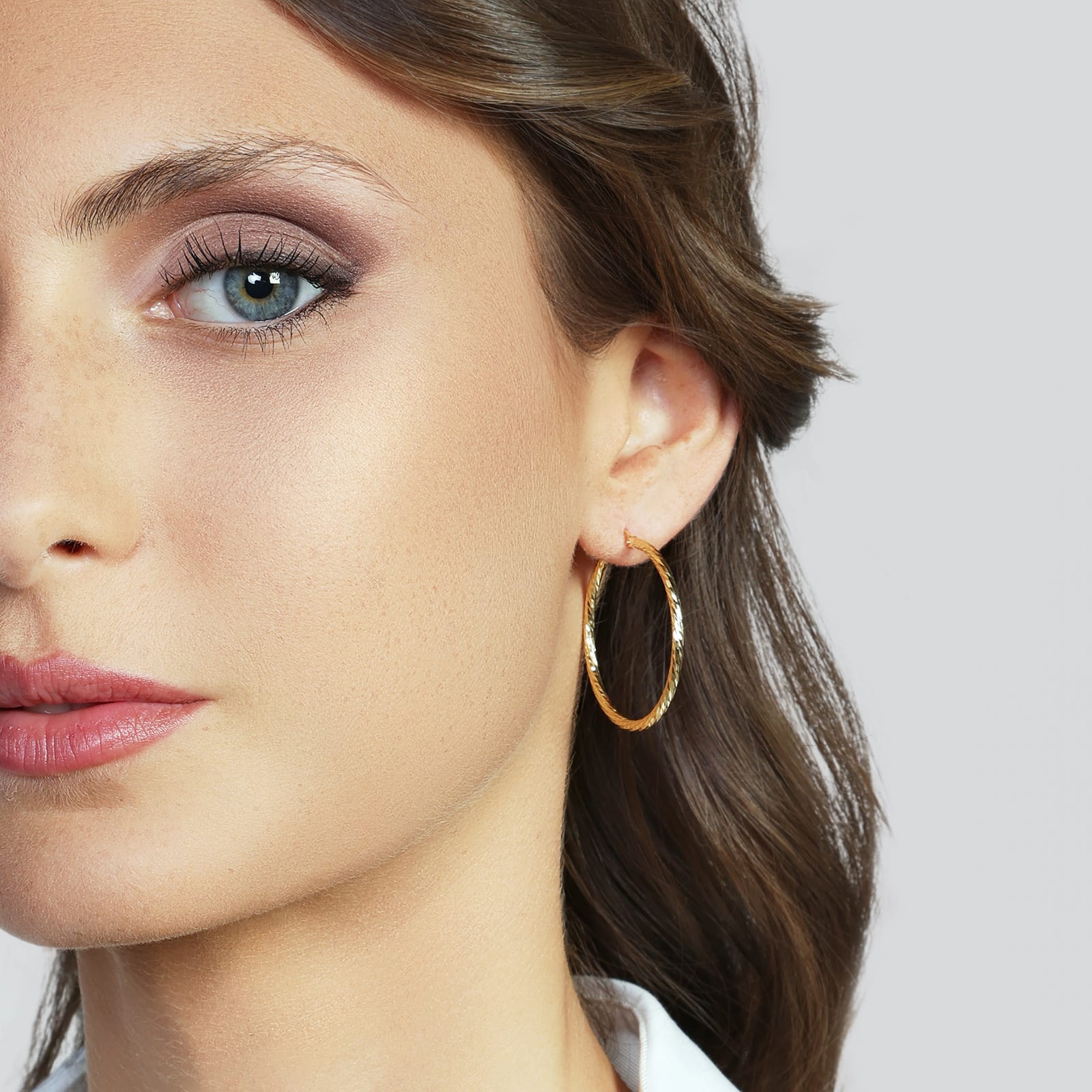 Orecchini a cerchio donna in ottone placcato oro. Raffinati, luminosi e versatili: questi orecchini a cerchio sono il dettaglio perfetto per completare ogni look con un tocco di luce e stile. Un gioiello fashion, dal design minimal e sempre attuale, perfetti da indossare tutti i giorni, ma anche per valorizzare outfit più eleganti nelle occasioni speciali. Un vero e proprio must-have di femminilità e raffinatezza da avere sempre con te.