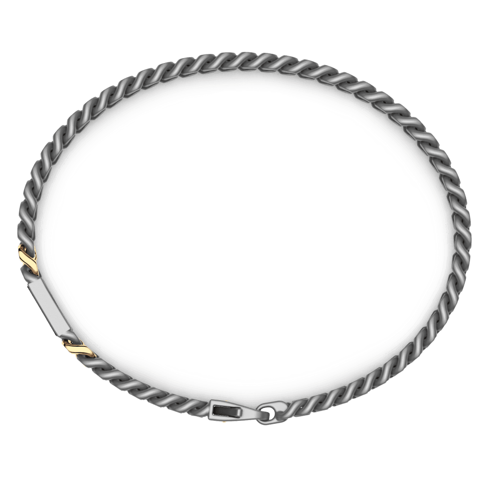 Questo bracciale Zancan è realizzato in titanio ultraleggero e oro 18kt, combinando resistenza e raffinatezza.
